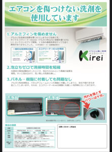 弊社で使用しているエアコン洗浄剤は、「エアコンを傷めず・環境にも配慮しており・洗浄能力も高い洗剤」を使用しております。