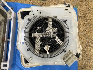 あまりエアコンクリーニングはしたことないらしくしっかりと汚れておりました!写真だとわかりずらいですが熱交換器は真っ黒でした!