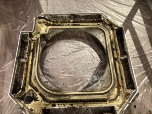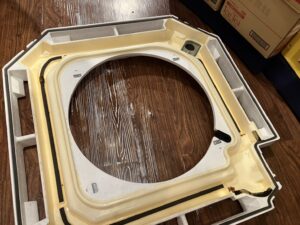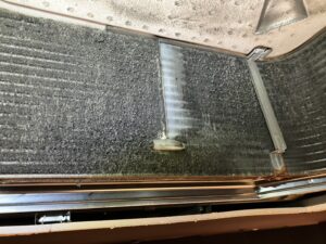 今回の汚れ具合ですと、一回の洗剤塗布では汚れは落ちきれないので二回洗剤塗布を行い水によるすすぎを多く行いました!弊社では素材に優しい洗剤を使用してはおりますが、エアコン内部に洗剤の残りが残ってしまうと腐食の原因にもなりますので二回洗剤塗布した場合はすすぎの時間を多くとるようにしております!