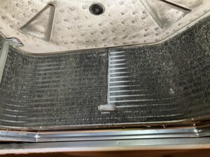 今回の使用した水の量は約30リットルほどです!熱交換器に汚れが残っているように見えますが、こびりついてガチガチに固まっていますので無理に取ろうとすると熱交換器に影響出る可能性がありますのでお客様にはその旨をお伝えさせて頂いております。