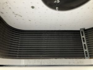 前々から臭いが少しだけ気になっていたらしく熱交換器の汚れが臭いの原因かなとは思いました。この状態を放置し続けると、ドレンパン内に汚れが溜まり水漏れの原因にもなります!