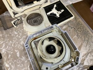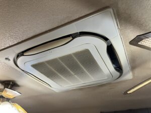 ダイキンエアコンクリーニングです。天カセ4方向エアコンクリーニングとなります。二年前ぐらいにエアコンクリーニングをされたらしく夏入るまでに綺麗にしたいとのことでした。