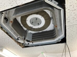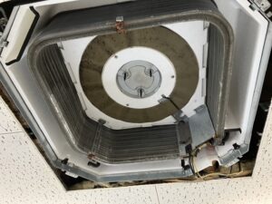 事務所のエアコンとは言え、ホコリやカビ汚れは発生してますね!今回初めて清掃したとの事でした。事務所あるあるで、ぱっと見でそんなに汚れてないから放置されることは多い印象ですね…